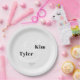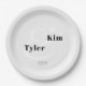 Trendy bold bride and groom names simple minimalist black and off white personalised wedding paper plates with a big ampersand. ++++++++++++ Suitable for contemporary casual style rustic modern weddings.