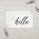These elegant business cards say "hello" in modern calligraphy, on a white watercolor paper look background. Personalise the back with your contact information.