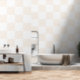 This peel and stick wallpaper has a bold and graphic pattern of chequerboard squares in clean white and a pale cream. The tonal combination is fresh and on-trend and brings life to your space without paint making it the perfect choice for rentals and those without the patience to mask and paint a pattern on their own or the commitment phobic interior decorator.