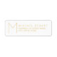 Simple Modern White and Gold Monogram Return Address Label.