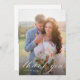 A modern photo thank you wedding card design with white calligraphy and a custom thank you message to your guests.