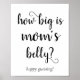 "How big is mom's belly?" table sign. Simple baby shower or gender reveal party sign in basic black and white featuring a fun, casual hand-lettered script. The classic design includes a modern handlettered quote typography overlay. For other colors or matching products, please visit the JustFharryn Zazzle store, or contact the designer, c/o Fharryn@yahoo.com All rights reserved. #bohochic #zazzlemade