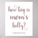 "How big is mom's belly?" table sign. Simple baby shower or gender reveal party sign in basic black and white featuring a fun, casual hand-lettered script. The classic design includes a modern handlettered quote typography overlay. For other colors or matching products, please visit the JustFharryn Zazzle store, or contact the designer, c/o Fharryn@yahoo.com All rights reserved. #bohochic #zazzlemade