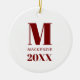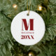 Simple Monogram Name Year Red and White Ceramic Tree Decoration