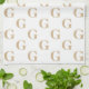 A simple modern pattern of beige initial letters / monograms on white background.