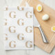 Simple Monogram Pattern Beige and White Tea Towel