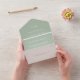 Unique All In One wedding invitation template with rsvp card for a convenient and low cost option for budget savvy couples. The modern yet elegant invitation features your two letter monogram at the top along with your wedding details in white over a sage green background. A chic and stylish design that is great for a minimalist couple.