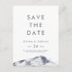This simple mountain save the date postcard is perfect for an outdoor wedding. The modern minimal design features an abstract navy and slate blue watercolor mountain landscape.