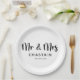 Modern minimalist script Mr and Mrs Paper Plates with shape and event date, simple and elegant. Great for modern wedding or events. See all the matching pieces in collection.