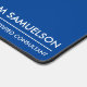 Protect your desk with this large desk/mouse pad featuring two lines of white custom text set against a solid blue background. Add your name, monogram, company name, logo etc - totally and easily customisable. Also makes a great gaming mat.