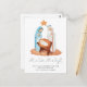 Simple Nativity Scene All Is Calm. A beautiful simple Nativity Scene and a line from the popular carol Silent Night in an informal set script on a white background for a contemporary feel on a convenient postcard. Easily personalise your greeting and names at the bottom.