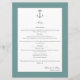 Add a touch of seaside sophistication to your celebration with this Teal Simple Nautical Anchor Wedding Menu, featuring a classic anchor motif and elegant coastal design. Perfect for beachside or maritime-themed receptions, this menu showcases your reception dinner options in a clean, simple layout. Elegant script and modern typography beautifully highlight each course while complementing the overall style of your coastal wedding theme. A stylish detail that enhances your table setting and guides guests through your carefully curated dining experience.