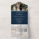 Simple Navy Blue 2 Photo QR Code RSVP Wedding All In One Invitation