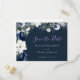 Simple Navy Blue Floral Save the Date Invitation Postcard