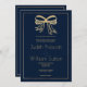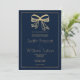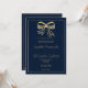 Simple navy blue gold glitter bow ribbon Wedding Invitation