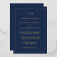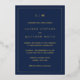 Simple Wedding Invitation featuring a modern yet elegant design with your two letter monogram at the top and your details surrounded by a thin border. This design is printed with real gold foil over a navy blue background. A chic and stylish design that is great for a minimalist couple.