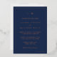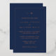 Simple Wedding Invitation featuring a modern yet elegant design with your two letter monogram at the top and your details surrounded by a thin border. This design is printed with real rose gold foil over a navy blue background. A chic and stylish design that is great for a minimalist couple.