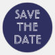 Minimalist navy blue wedding save the date sticker/envelope seal.