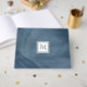 A simple subtle marble design guest book in navy blue with a modern white square badge that you can personalise by adding your monogrammed initial to. This is part of the Sailor Blue Subtle Marble Monogram Collection.