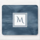 Simple Navy Blue Subtle Marble Modern Monogram Mouse Mat