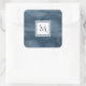 Simple Navy Blue Subtle Marble Modern Monogram Square Sticker