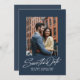 This stylish save the date features a retro inspired script "save the date" under a single photo on a classic navy blue background along with simple custom text. The back of this modern save the date has a coordinating blue stripe along with a horizontal photo, room for a custom message and a QR code for your wedding website. This vertical design is great for a trendy and stylish couple and it's a great way for the engaged couple to share wedding information with friends and family. Find more colors and styles in the collection by Lea Delaveris Design. Also available as a digital save the date download.