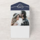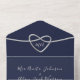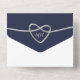 Experience understated elegance with our modern navy blue all-in-one wedding invitation. Adorned with a silver rope heart featuring the monogram initials of the bride and groom, and complemented by simple calligraphy script, this invitation exudes sophistication. Personalise it with a custom photo of the couple at the back and include a QR code for seamless RSVP and access to your wedding website. Set the stage for your special day with this sleek and stylish design, where every detail reflects the beauty of your love story.