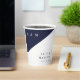 These navy blue and white minimalist, elegant, monogrammed wedding paper cups can be personalised with your information in modern typography. Designed by Thisisnotme©