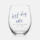 Simple Navy Handwriting Best Day Ever Stemless Wine Glass