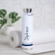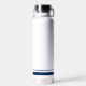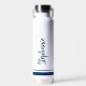 Simple Navy Stripes White Wedding Water Bottle. Personalise this stylish water bottle with your custom name.