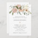 This simple, elegant First Holy Communion invitation features a boho rustic bouquet of watercolor flowers and greenery in neutral shades of peach terracotta and ivory, with dark text and a faux gold cross.
