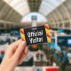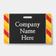 This simple badge design features the message "Official Visitor". It also features eye-catching orange, yellow and red coloured stripes. The back features a customisable company name or other custom message. [~Z0000286]