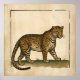A leopard with abstract spots, highlighted by a subtle gradient of yellow and brown, set in a mediaeval artistic style.