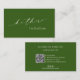 Modern olive / forest green business cards featuring a simple and minimal design with "hi there" in an elegant calligraphy along with your name on the front. The back has your contact info along with social media icons and an optional QR Code in a minimalist layout. The QR Code may be removed and the social media icons may be changed or removed in the design editing tool.