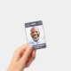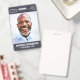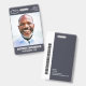 A modern and simple badge that does not distract from the important details. Easy to read from afar. Add a custom logo and company details. Add the employee's name, photo, and professional title. The bar of colour can be modified to match the company's official colours. At the back, add more information such as return address and the employee's ID number. Perfect for oval shaped logos.