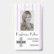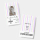 A minimalist and simple design featuring pastel stripes and white coloured background, photo, barcode and logo template. Easily customise this badge to your brand. -designed with ❤ by Zaubershirts-