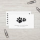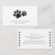 Simple, modern and minimal dog groomer paw print business cards featuring paw prints along with your company name on the front and company details on the back all in a modern font. Perfect for pet grooming professionals and others in the animal care industry. White background with black text which can be changed if preferred. Simple to customise by adding your own business details.