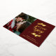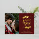 A beautiful photo holiday card featuring evergreen branches and the words Peace & Joy is a stylish hand lettered typeface. The back of the card features a faux gold scalloped background on burgundy. Personalise with your photo, message and names. Remove the back background and replace the colour easily in the Design Tool.