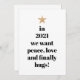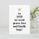 Simple Peace, Love & Finally Hugs Humor Quote 2021 Holiday Card