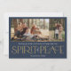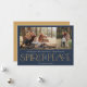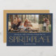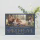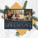 These simple holiday photo greeting cards feature the greeting, "Wishing you a Merry Christmas and a Happy New Year," along with the greeting, “Spirit of Peace,” in large gold and ivory letters on a navy background with placeholders to add two of your favourite photos, family name & the year.
