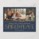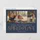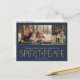 These simple holiday photo greeting postcards feature the greeting, "Wishing you a Merry Christmas and a Happy New Year," along with the greeting, “Spirit of Peace,” in large gold and ivory letters on a navy background with placeholders to add two of your favourite photos, family name & the year.