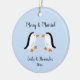 Merry Christmas to the married couple! This ornament features a design with two cute stylised penguins. A perfect gift for a newly married couple. Customise the text, names, and year to create a special ornament that will brighten up the Christmas tree for years to come and mark the occasion of a couple's first married Christmas together. Easily change the text to customise for an engaged couple.