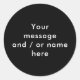Simple modern personalised add your own message and name black and white classic round sticker. Designed by Thisisnotme©
