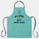 Do you know a man who just LOVES cooking? Is the kitchen or BBQ his 'Happy Place'? Then this simple, personalised LIGHT TEAL AQUA apron with bold black typography would make the ideal gift. The design shows a Chef's Hat motif at the top, followed by text that reads WELCOME TO DAD'S HAPPY PLACE. All text is CUSTOMIZABLE so you can personalise by changing 'DAD'S' to a name of your choice. Or better still, get one for each family member and create some foodie memories together! Great gift for food lovers at Christmas, for Birthdays, Father's Day or throughout the year. Available in other colours and suitable for all size options.