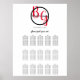 This design features an elegant yet simple arrangement of the bride's and groom's personalised initials. The couples names are encircled with a black ring and placed on top of the bride's and groom's first name initials which are displayed in red colour typography. This red, black and white design is simple yet elegant in every way. The combination of colours creates a sophisticated, trendy and chic style. Elegant wedding seating chart design with modern elements. The simple setup of the typography gives it a distinct style. Matching wedding invitations and other stationery items are also available.