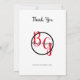 This design features an elegant yet simple arrangement of the bride's and groom's personalised initials. The couples names are encircled with a black ring and placed on top of the bride's and groom's first name initials which are displayed in red colour typography. This red, black and white design is simple yet elegant in every way. The combination of colours creates a sophisticated, trendy and chic style. Elegant wedding thank you card design with modern elements. The simple setup of the typography gives it a distinct style. Matching wedding invitations and other stationery items are also available.