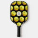 Promote your company, business or Pickleball Club with a custom colour pickleball paddle featuring your logo in a pattern of golden yellow pickleballs shown against an editable black background. COLOR CHANGE: Choose a background colour or add a styled graphics background to coordinate with your logo to create your own custom look by clicking on the EDIT tab in the PERSONALIZE section. PADDLE OPTIONS: Choose from Black, Tan or White edging and grip colours on the ordering page. ASSISTANCE: For help with design modification or personalisation, colour change, transferring the design to another product or if you would like coordinating items, contact the designer BEFORE ORDERING via the Zazzle Chat MESSAGE tab below or email makeitaboutyoustore@gmail.com.