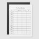 The simple checklist log caring for dogs and cats. Anytime you can make sure the dates when you did care at the last with this (Note health checks and/or vaccine logs in the "Vet" column). The title and caring fields on the top are customisable, and you can put your pet's name in the title field.