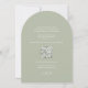 Announce your special day with this elegant wedding arch design, featuring a couple photo template that captures your love story. The modern classic minimalist style, enhanced with calligraphy script typography, exudes timeless elegance. A convenient RSVP QR code response adds a modern touch, while the picture photography design ensures a personal and memorable invitation. Adorned with botanical sage green accents, this card blends natural beauty with traditional classy wording. Perfect as a sophisticated portrait card, it’s a unique announcement that reflects your refined taste and sets the tone for your big day.