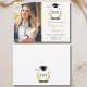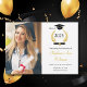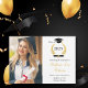 Celebrate in style with this simple and stylish graduation announcement card. Add your favourite photo and details. Design features class of 2025 in elegant script with illustration of laurel wreath, a grad cap topper and diploma. A photo of the graduate with their name and details in a mix of stylish black and gold typography on a clean white background. Back of card has a replica of the laurel wreath design. Easy to customise. Congratulations!